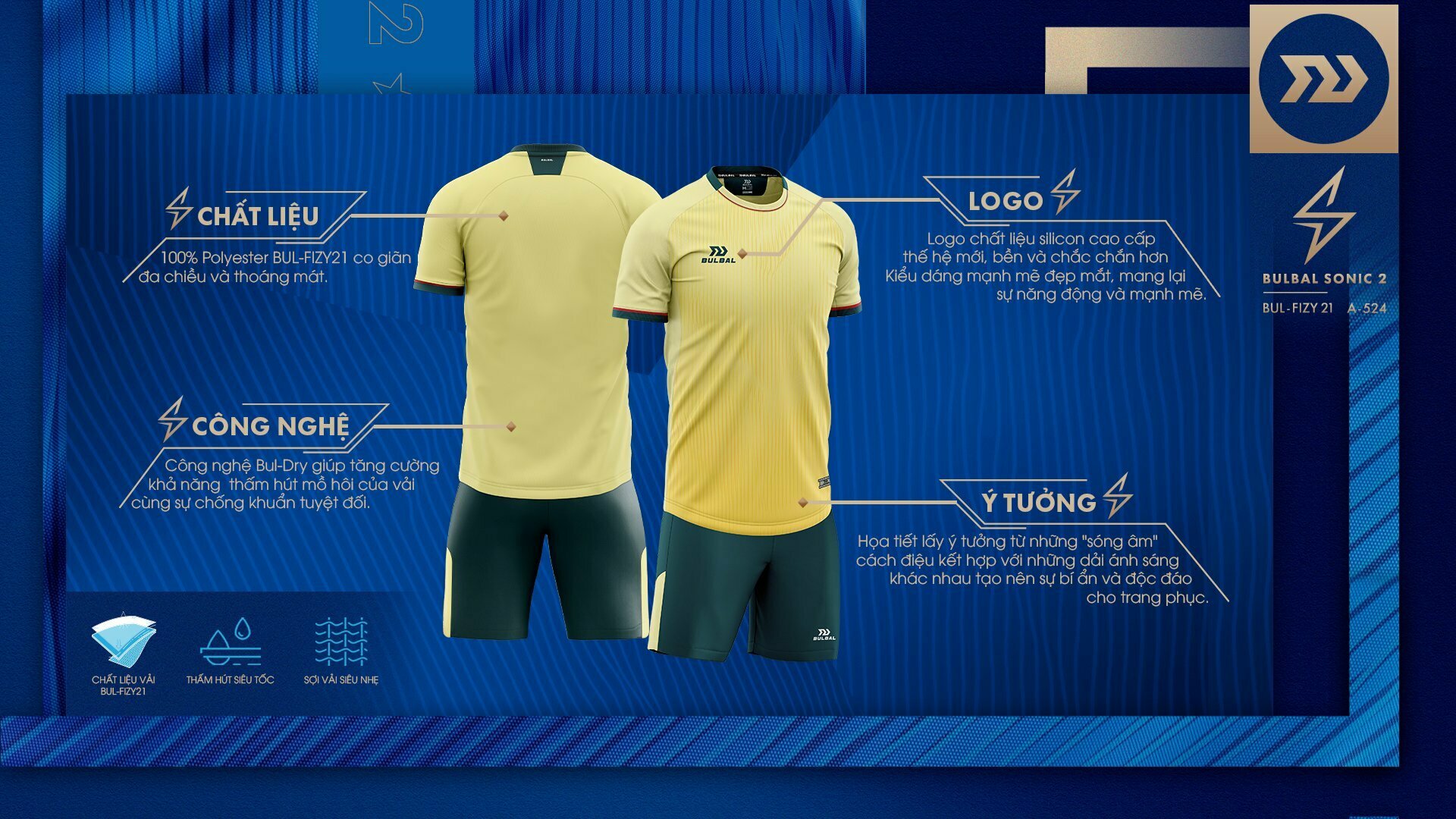 Bắt nguồn từ các họa tiết của hình tượng sóng âm với sắc Vàng chủ đạo đã tạo nên “siêu phẩm” không thể nổi bật và trẻ trung hơn, Bulbal Sonic 2 Vàng chính là một hào quang có năng lượng sáng tạo và niềm đam mê đối với bóng đá.
