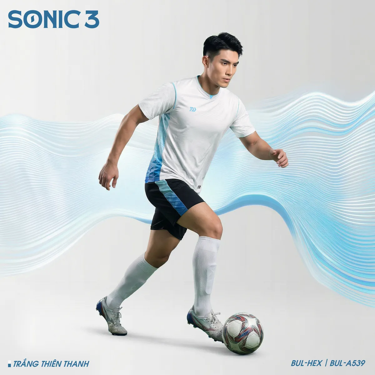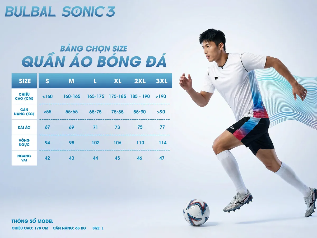 Bulbal Sonic 3 Trắng Thiên Thanh mẫu quần áo bóng đá mới nhất dành cho những cầu thủ yêu thích tốc độ, sự linh hoạt và phong cách nổi bật. Lấy cảm hứng từ những làn sóng chuyển động liên tục trên sân cỏ, Sonic 3 mang đến thiết kế chuyển sắc độc đáo, tái hiện rõ nét tinh thần “Break The Speed” – phá vỡ mọi giới hạn về tốc độ.