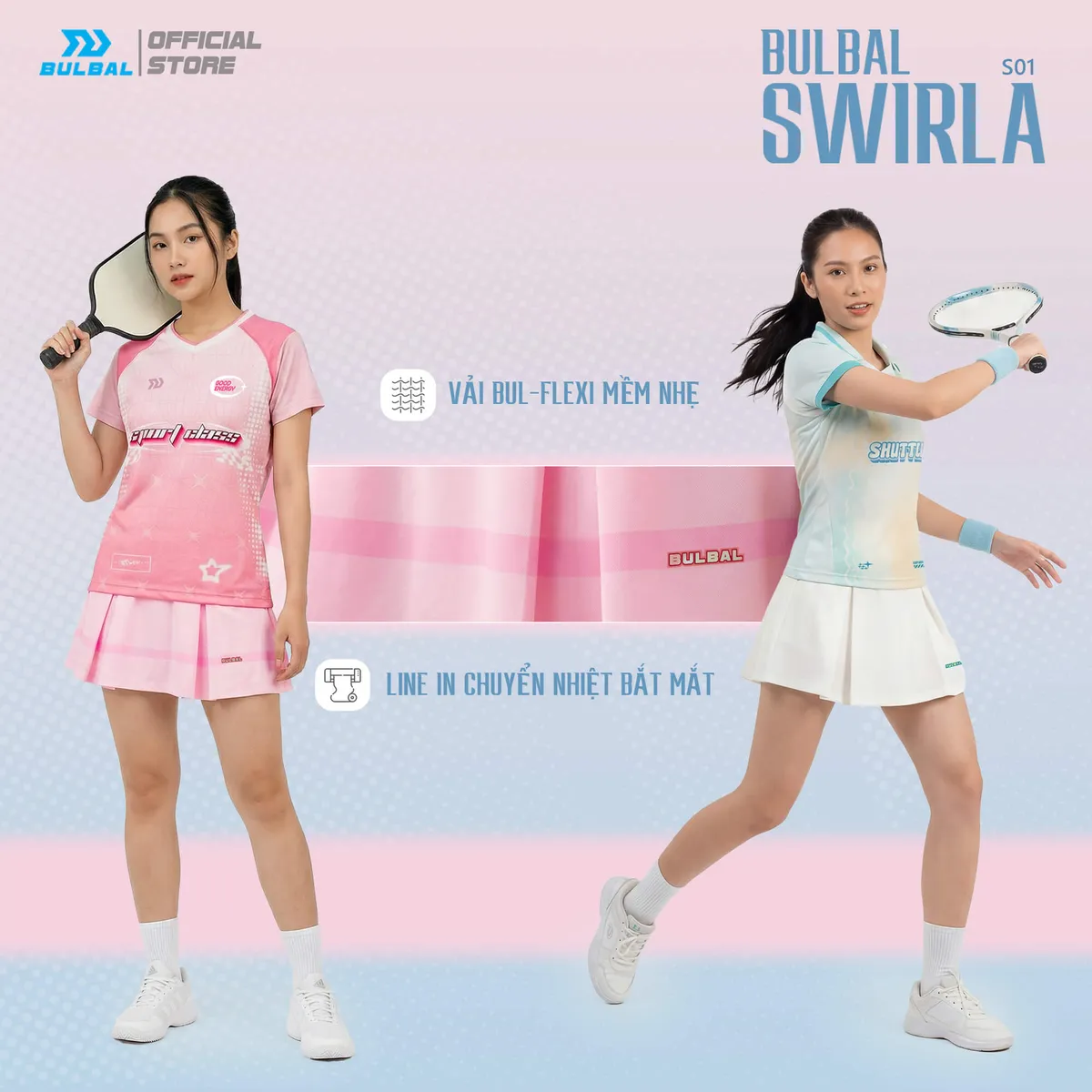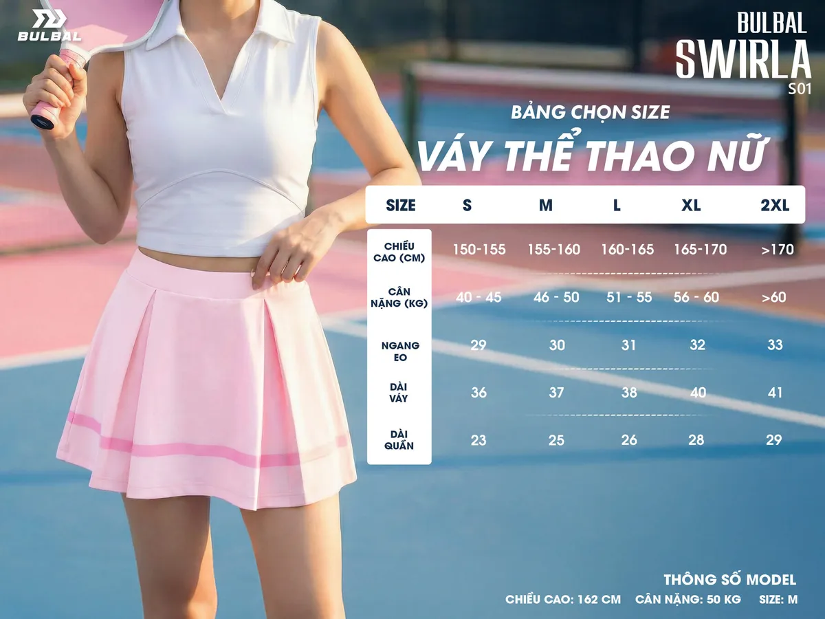 Bulbal Swirla S01 Hồng Dâu là mẫu váy thể thao nữ mới nhất, mang phong cách soft sporty kết hợp hoàn hảo giữa sự nữ tính và tinh thần vận động. Lấy cảm hứng từ những ngày hè năng động, sản phẩm không chỉ giúp bạn tự tin trên sân mà còn dễ dàng ứng dụng trong phong cách thường ngày.