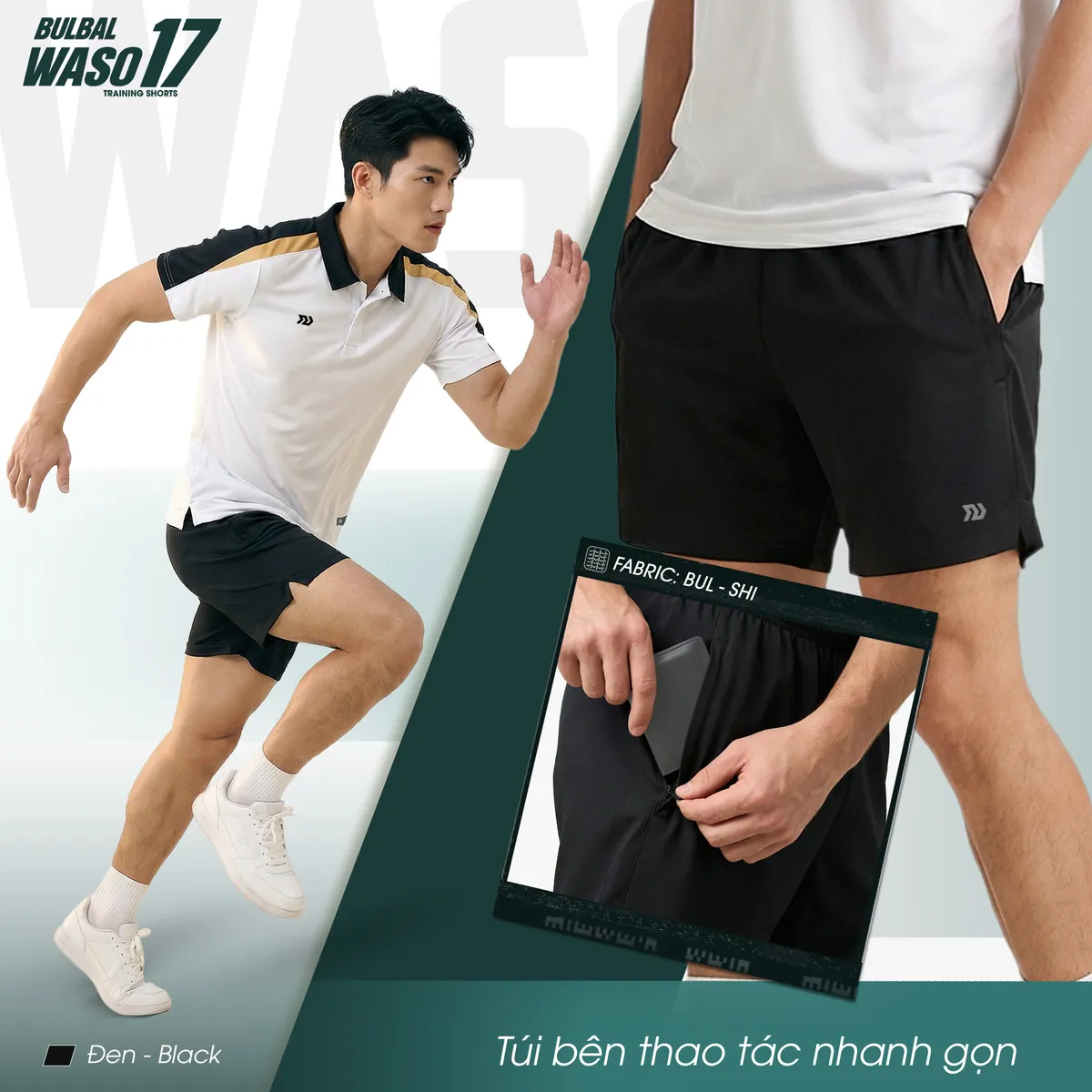 QUẦN SHORT THỂ THAO BULBAL WASO 17 ĐEN
