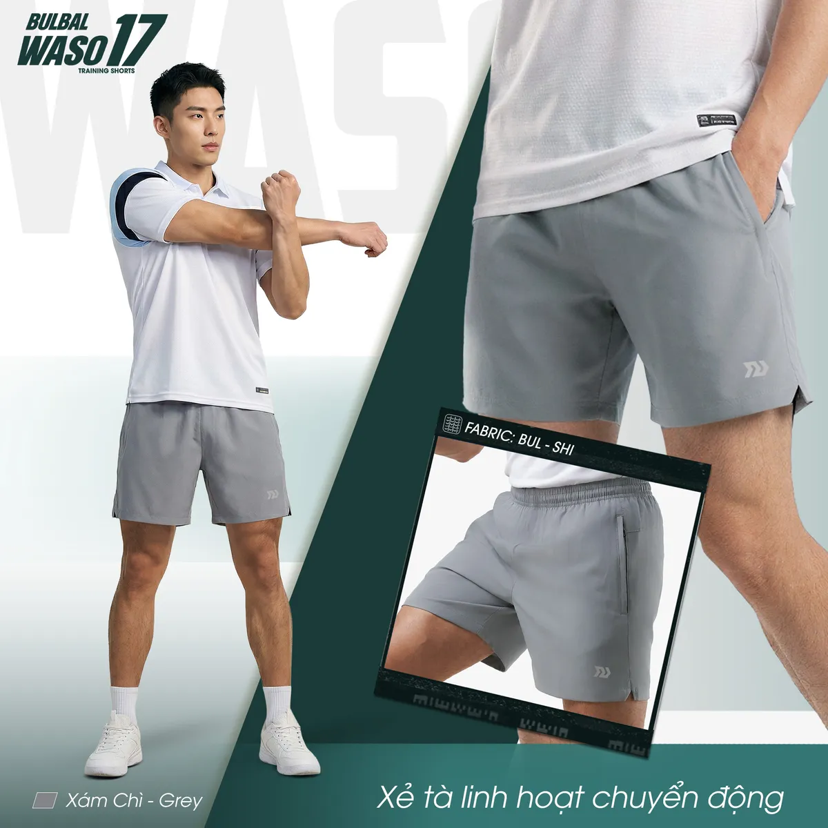 QUẦN SHORT THỂ THAO BULBAL WASO 17 XÁM CHÌ